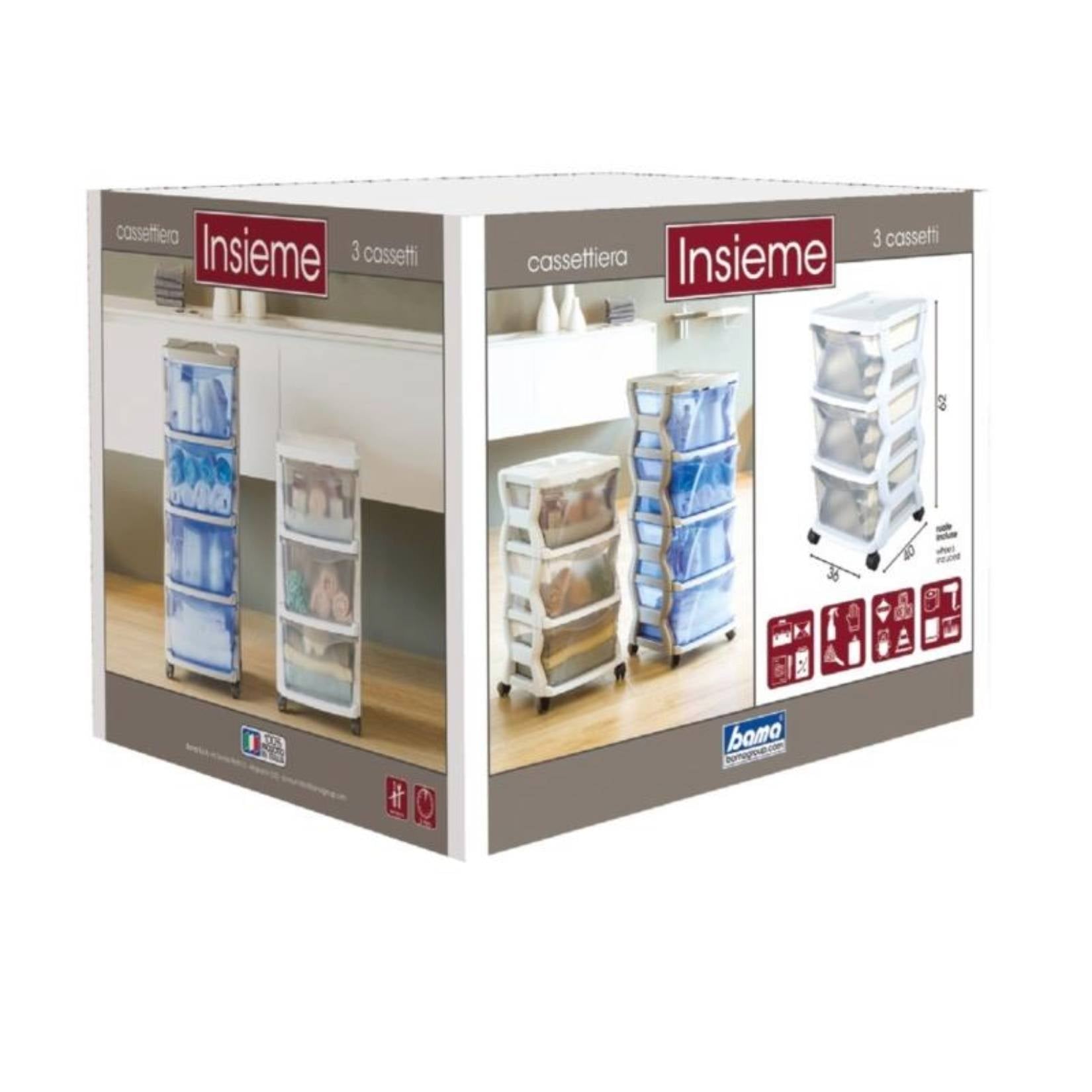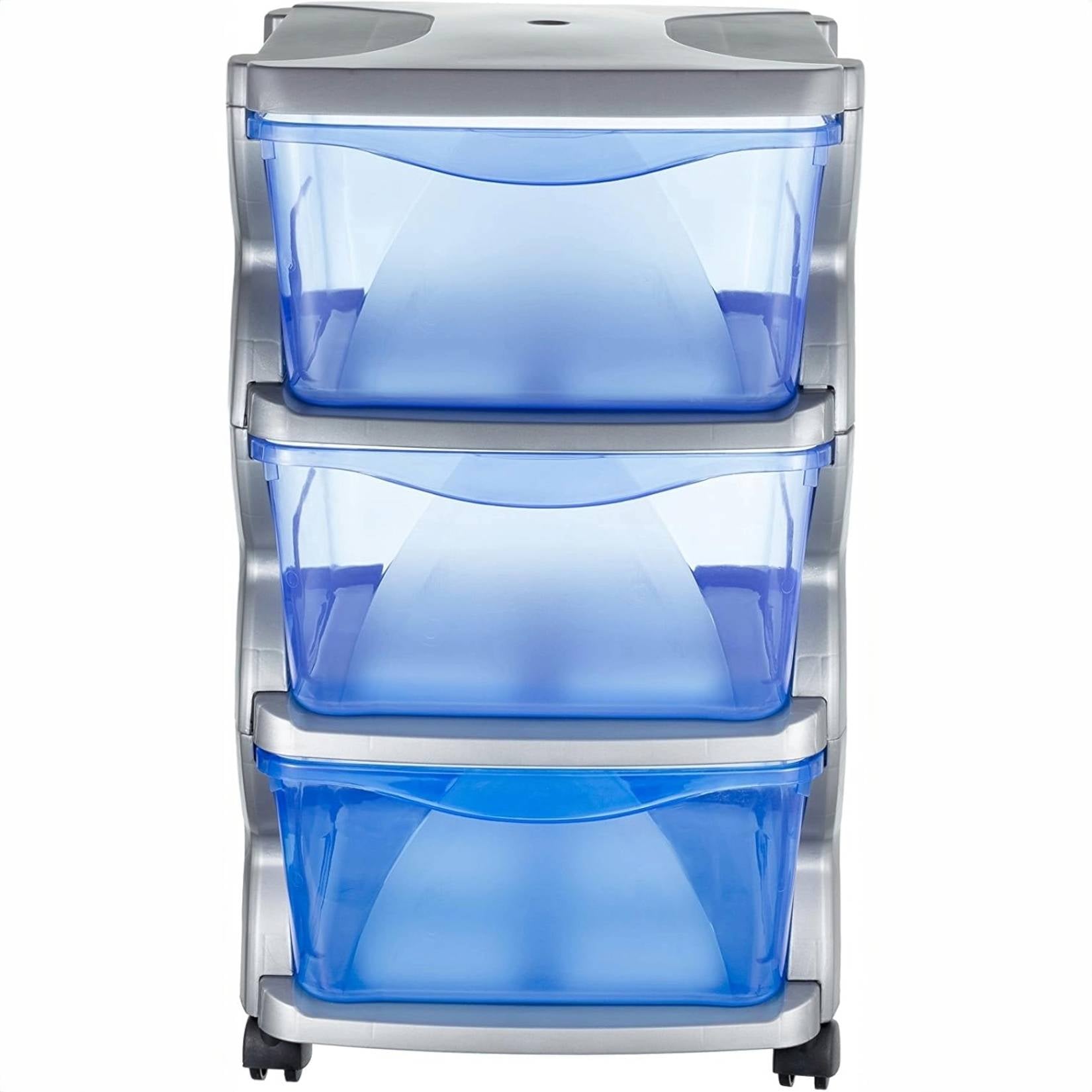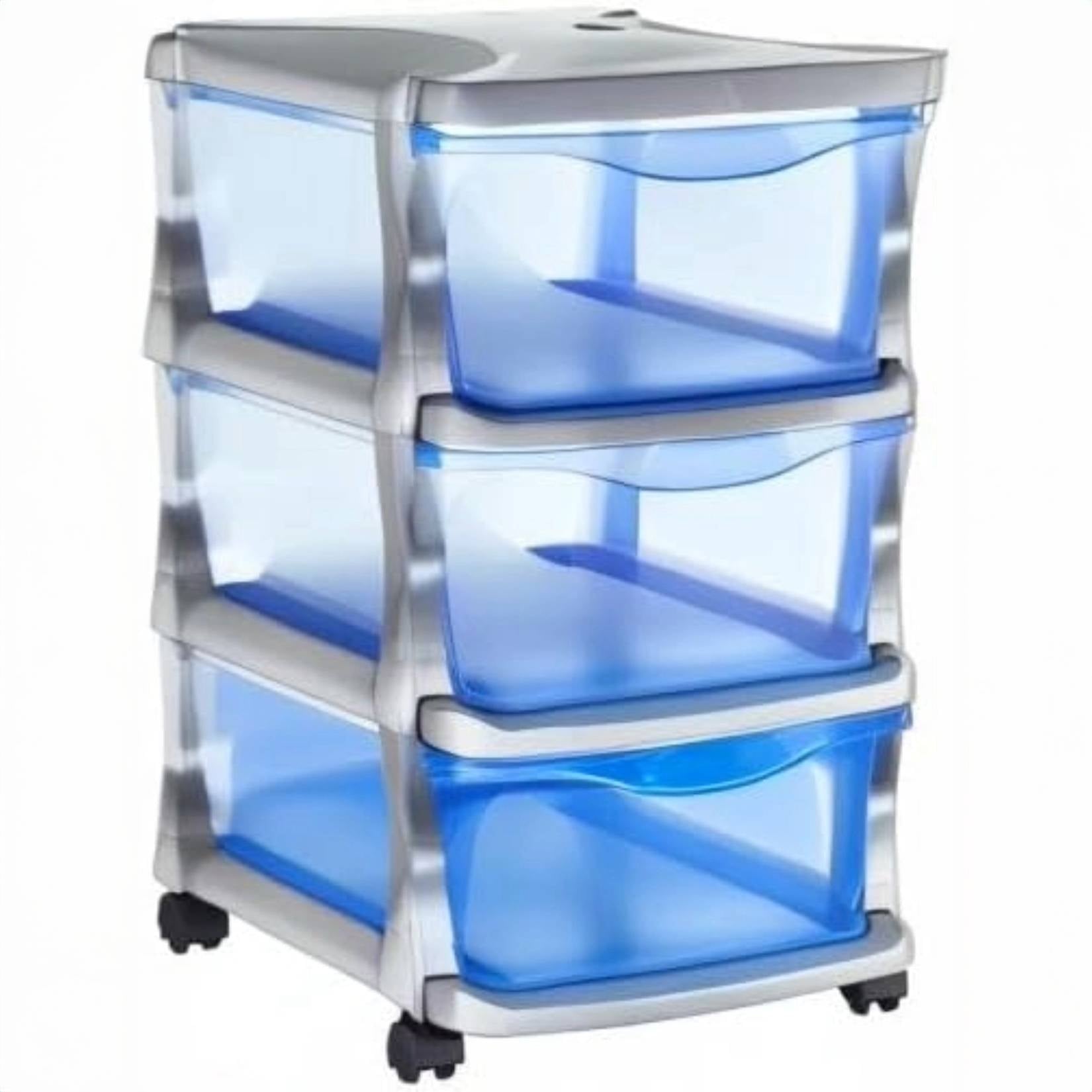 Die stapelbare Kommode mit **3 Schubladen** von Bama ist eine praktische und raffinierte Lösung für die Organisation Ihres Zuhauses und Büros. Die **silberne** Farbe verleiht einen modernen und eleganten Touch, während die kompakte Struktur den Platz optimal nutzt.