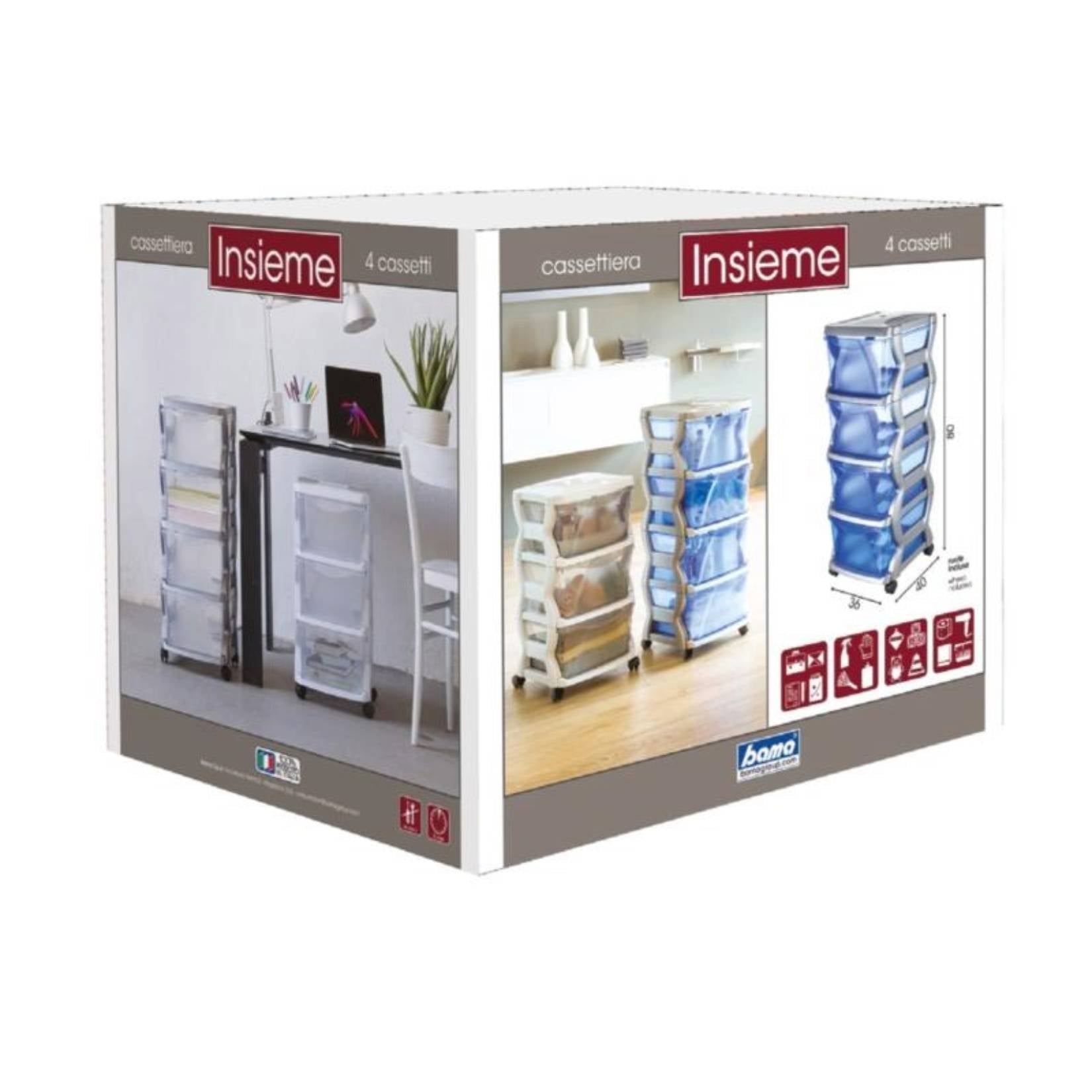 Die stapelbare Kommode von Bama mit **4 Schubladen** ist eine funktionale und moderne Lösung für die Organisation Ihres Zuhauses und Büros. Die **weiße** Farbe bietet eine klare und helle Ästhetik, während die kompakte Struktur eine praktische und elegante Raumoptimierung ermöglicht.