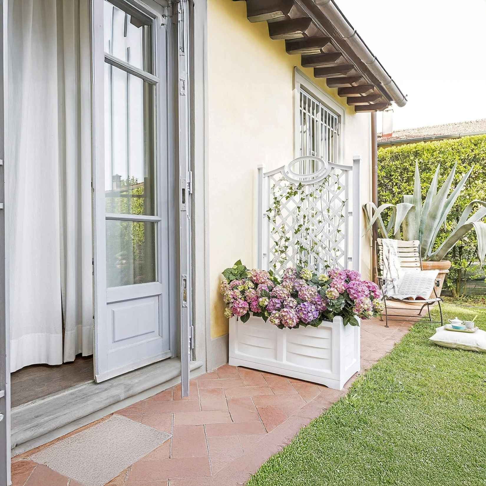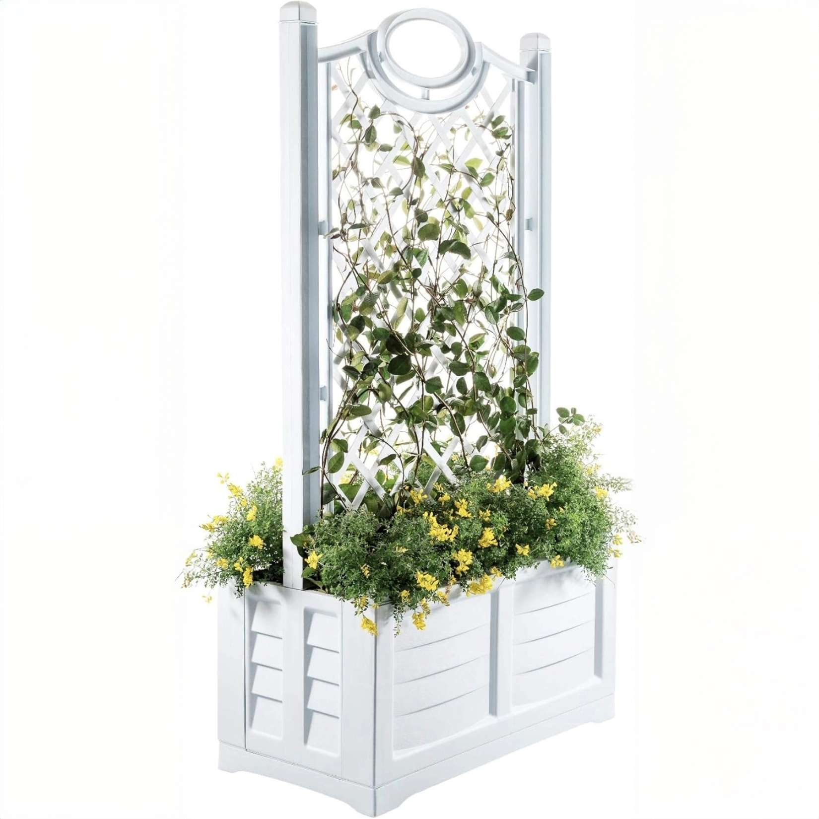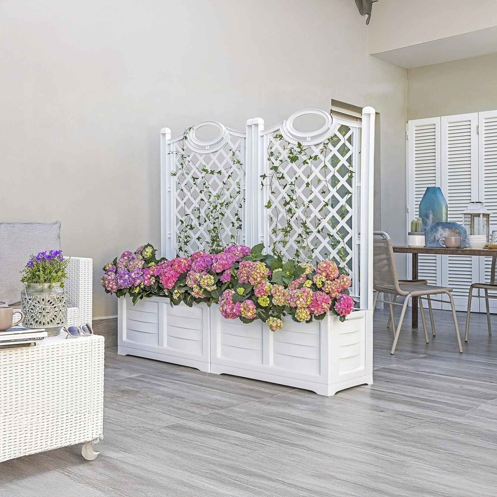Bama – Pflanzkübel mit Rückwand – Weiß – Maße: 80 x 42,5 x 150 cm