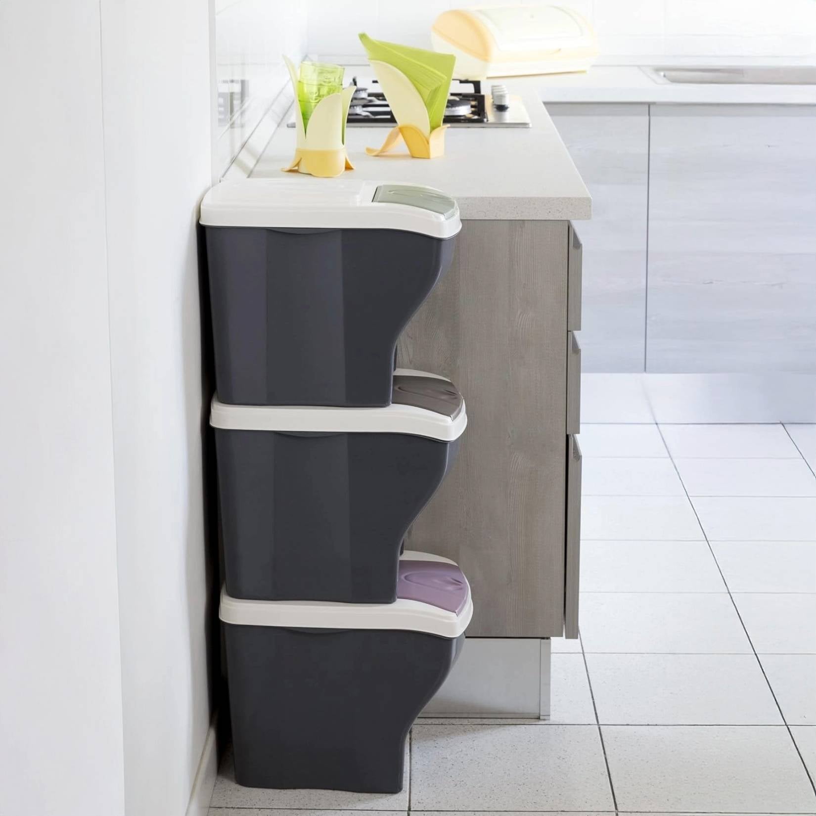 - Stellen Sie die Behälter einzeln auf oder stapeln Sie sie, um Platz zu sparen.