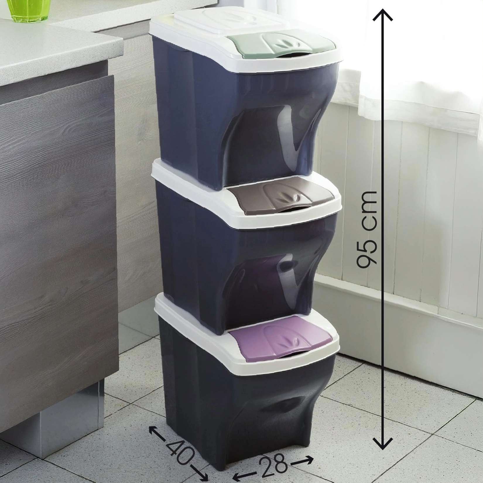 Bama – Poker Tris Abfalltrennbehälter – Modular 20 Liter Fassungsvermögen – Maße 28 x 40 x 31 cm – Verschiedene Farben