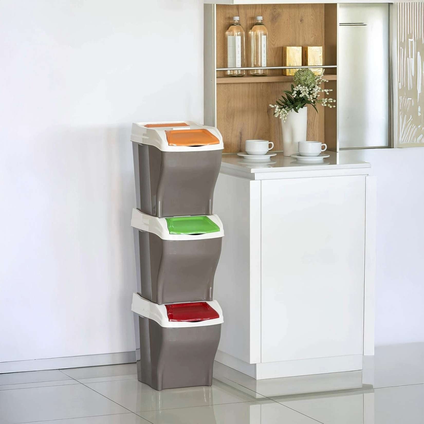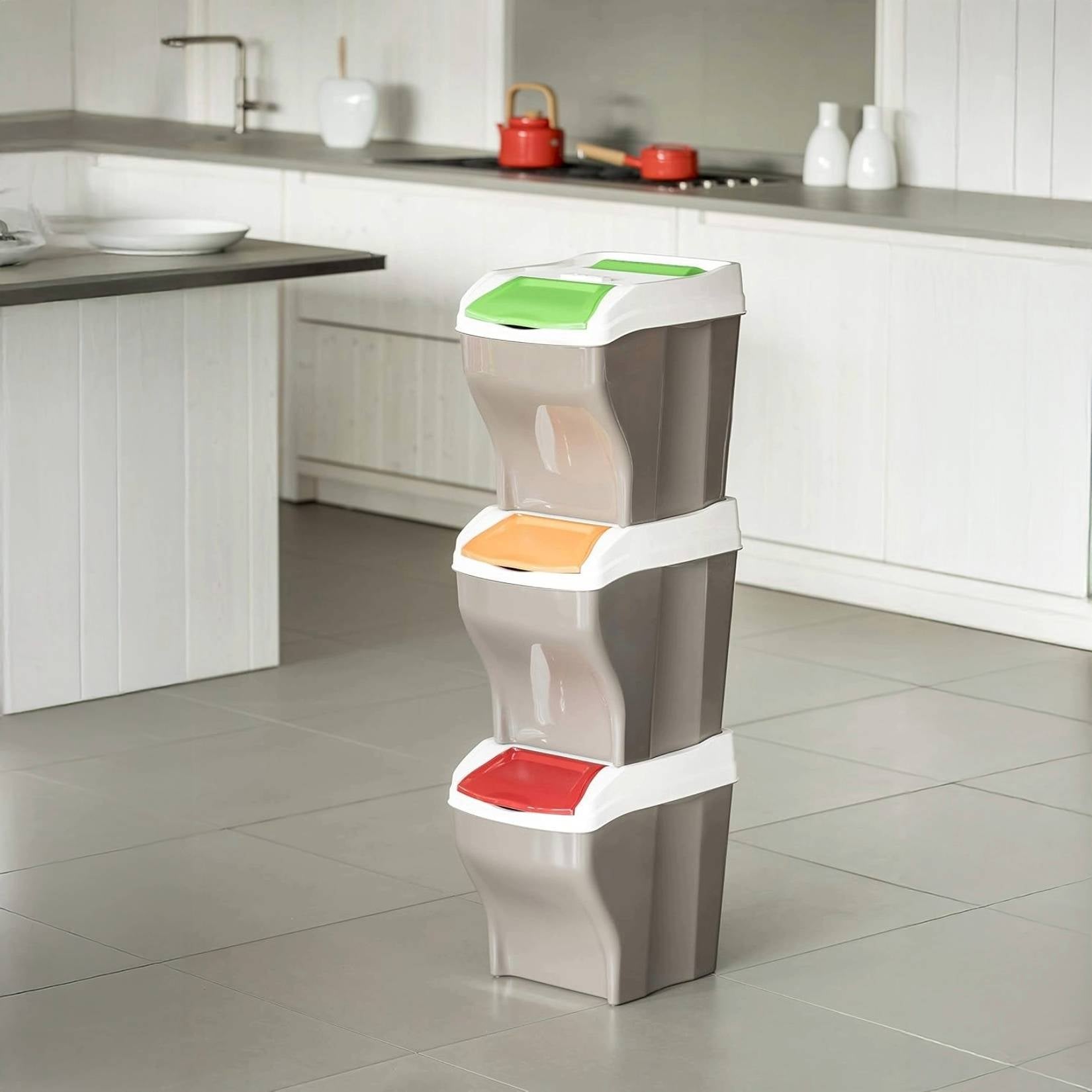 Bama – Stapelbare Tris-Abfalleimer – Mehrfarbig – Maße 30x40x37,5h – Fassungsvermögen 27 Liter
