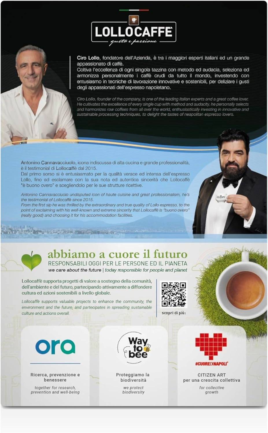 Caffè Lollo steht für Tradition und Leidenschaft für italienischen Kaffee. Die klassische Espressomischung wurde entwickelt, um auch anspruchsvollste Gaumen zu verwöhnen und bietet Geschmack und Komfort in jeder Kapsel. Mit der Packung mit 100 Kapseln haben Sie immer frischen, köstlichen Kaffee zur Hand.