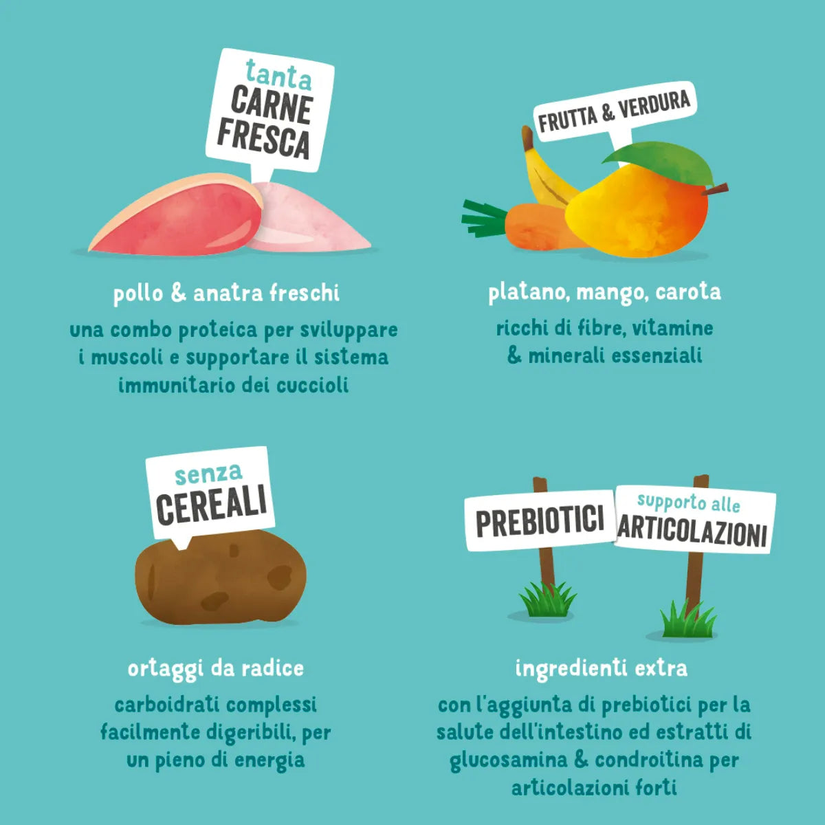 **Edgard & Cooper Ente und Huhn** Trockenfutter ist die perfekte Wahl für alle, die ein gesundes und schmackhaftes Futter für ihren Welpen suchen. Dank seiner **natürlichen, proteinreichen Formel** garantiert es **Wohlbefinden und Vitalität**.