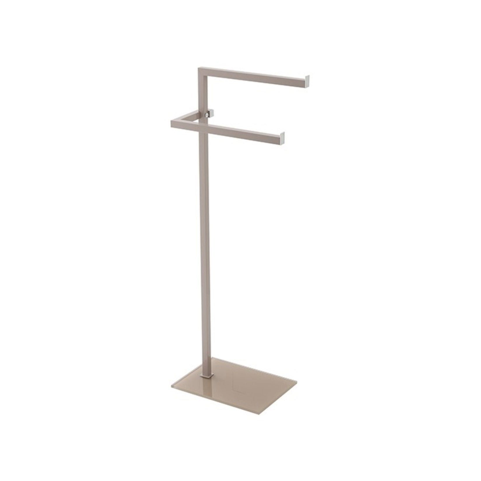 Feridas – Freistehender Handtuchhalter aus taubengrauem Stahl mit Sockel aus gehärtetem Glas – Eleganz und Stabilität für das Badezimmer