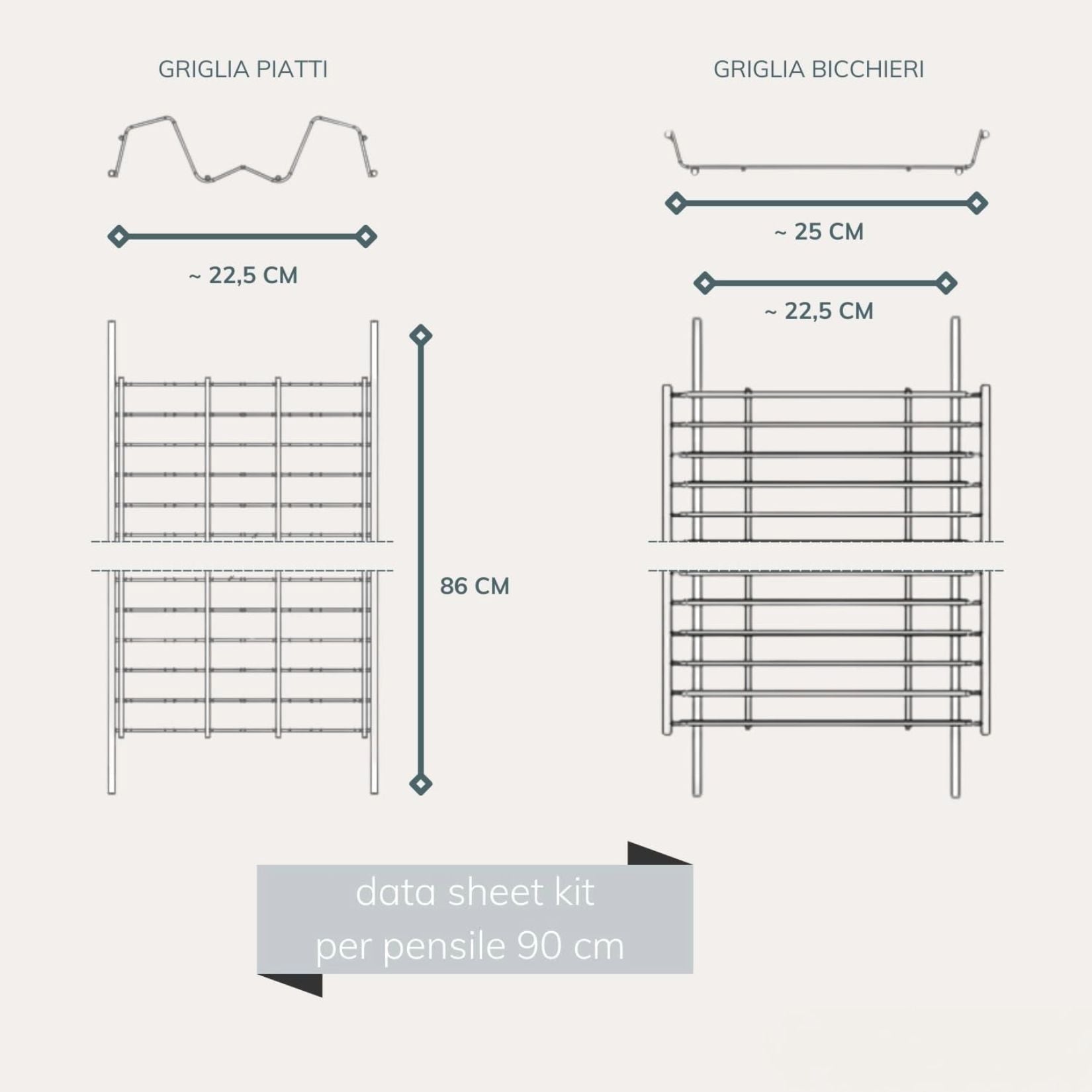 86 cm Einbau-Abtropfgestell aus Chromstahl für 90 cm Wandschränke – rundes Draht-Geschirrgestell, Made in Italy