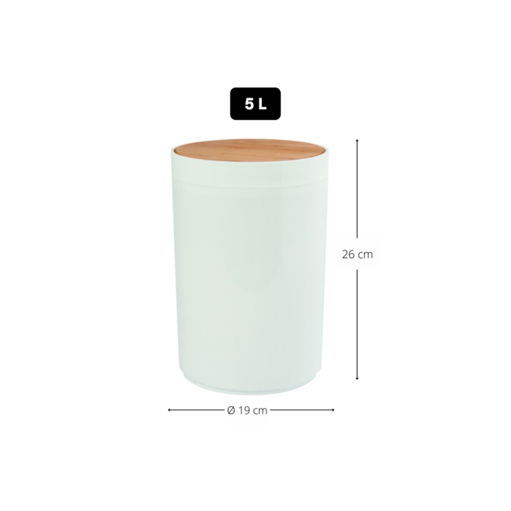 Msv – 6L Weißer Badezimmer-Mülleimer – Kompakter runder Mülleimer mit Schwingdeckel, Modernes Design 18×26 cm
