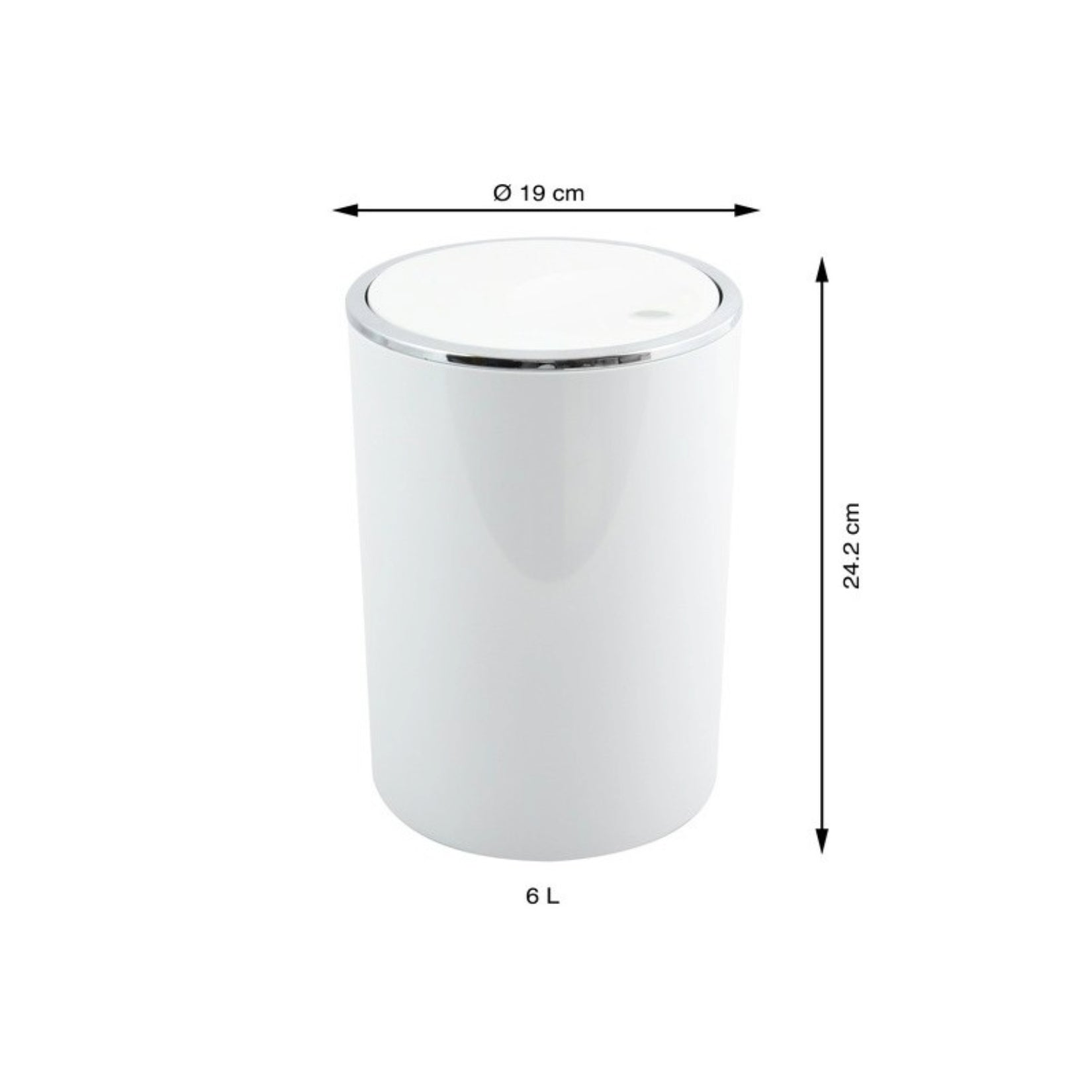 MSV – Kamaka 6L Badezimmer-Mülleimer – runder Abfalleimer mit abnehmbarem Schwingdeckel aus weißem PP, modernes Design