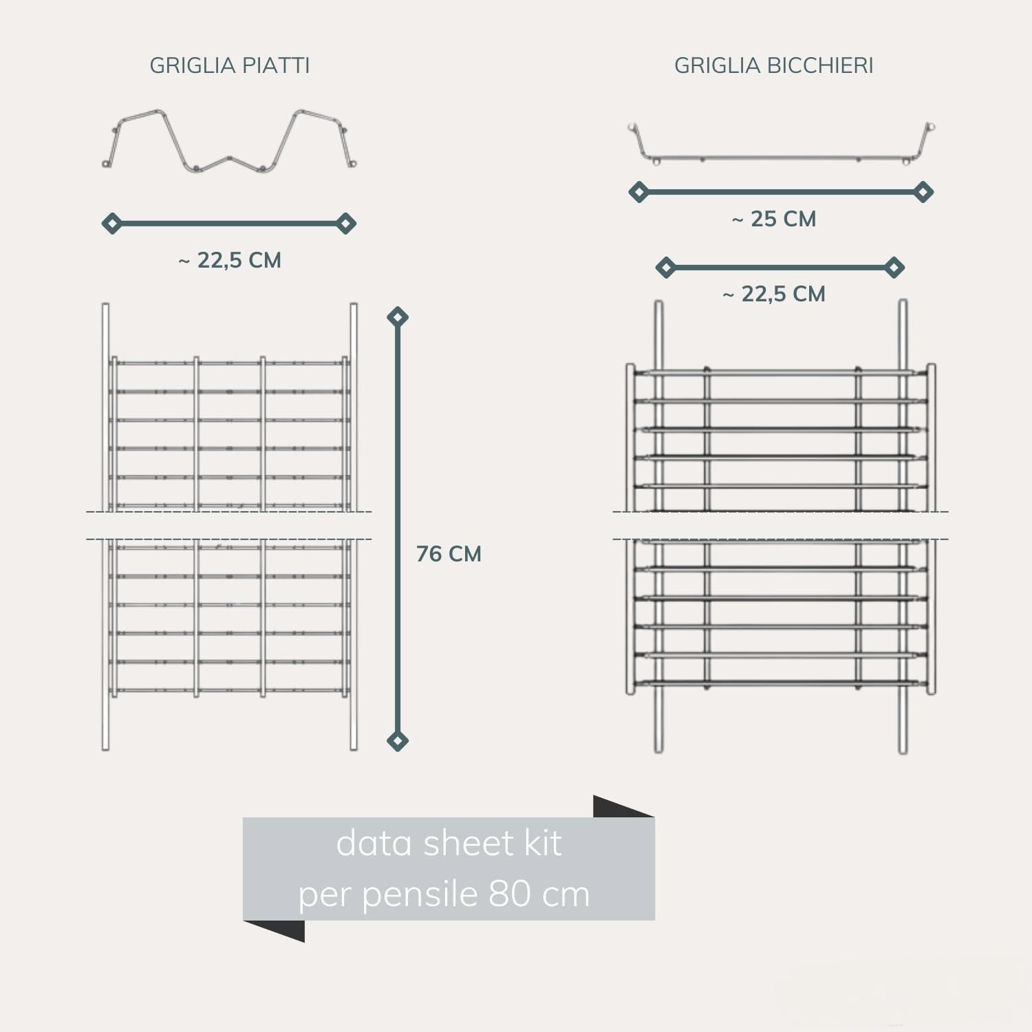 Abtropfgestell aus verchromtem Stahl, 76 cm, mit Abtropfschale – für 80 cm hohe Hängeschränke – robust und Made in Italy