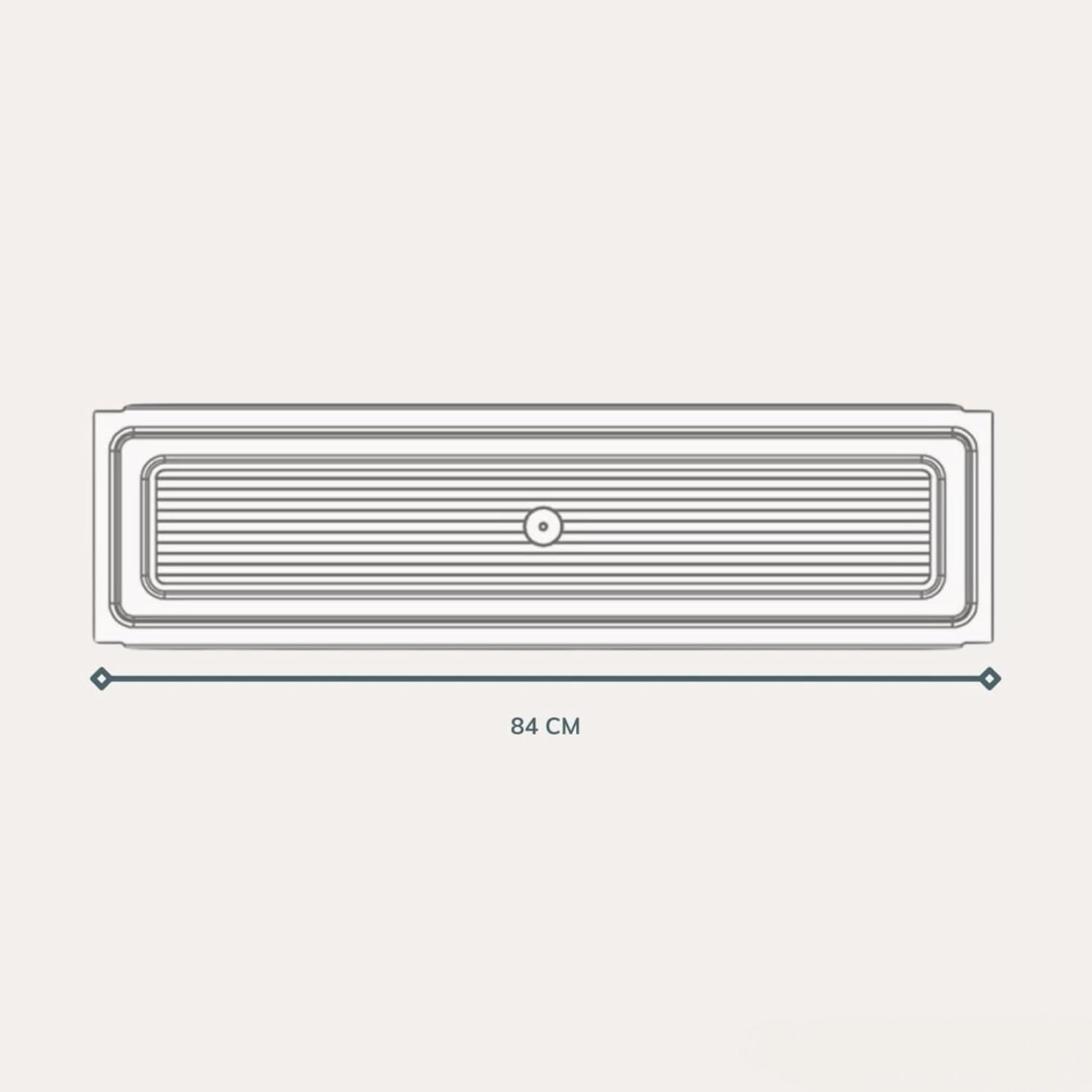 Das 86 cm große Abtropfgestell aus geschütztem Chromstahl ist für den Einbau in