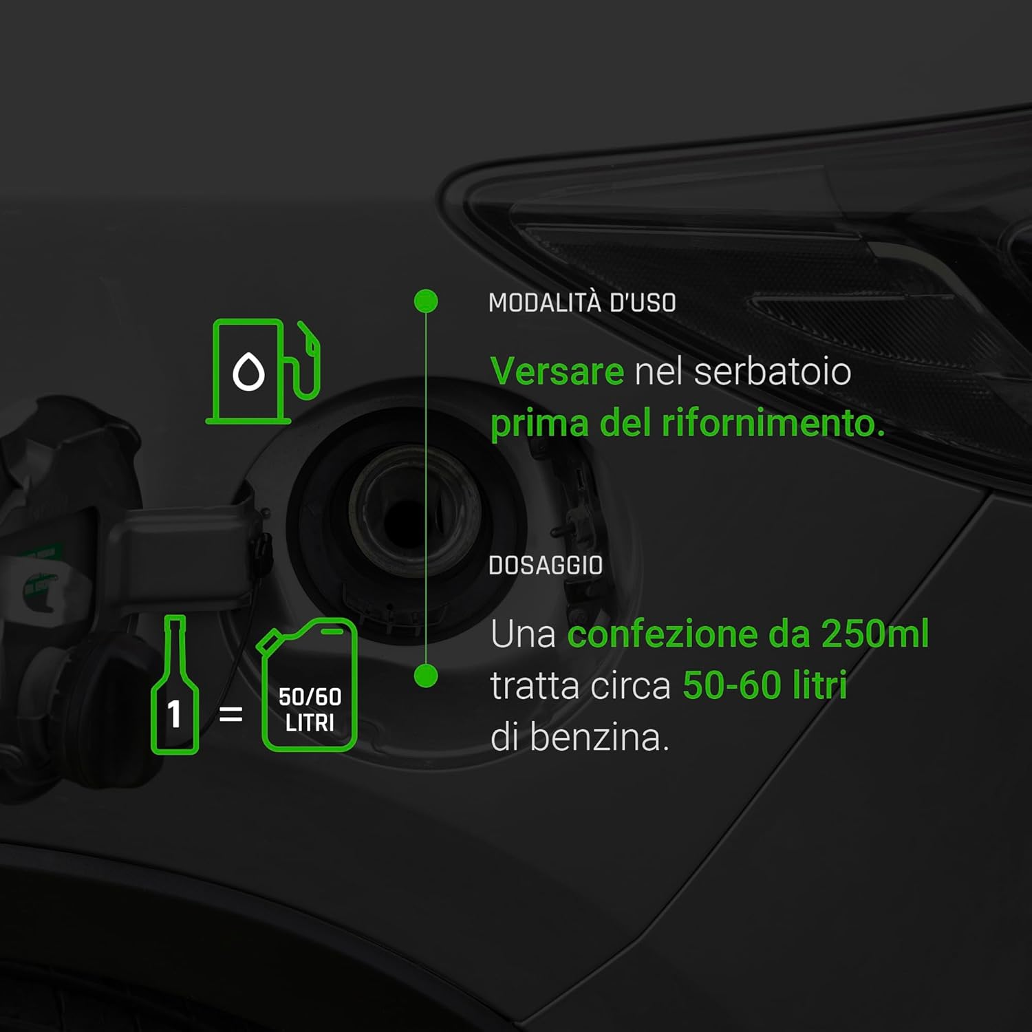 - Utilizzo: Un flacone tratta circa **50-60 litri di benzina**.