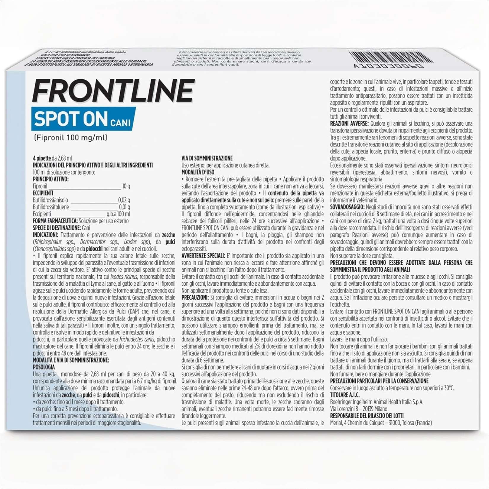 FRONTLINE Spot On Cani 20-40 Kg | 3 Pipette | Antiparassitario BOEHRINGER | Protezione Pulci e Zecche