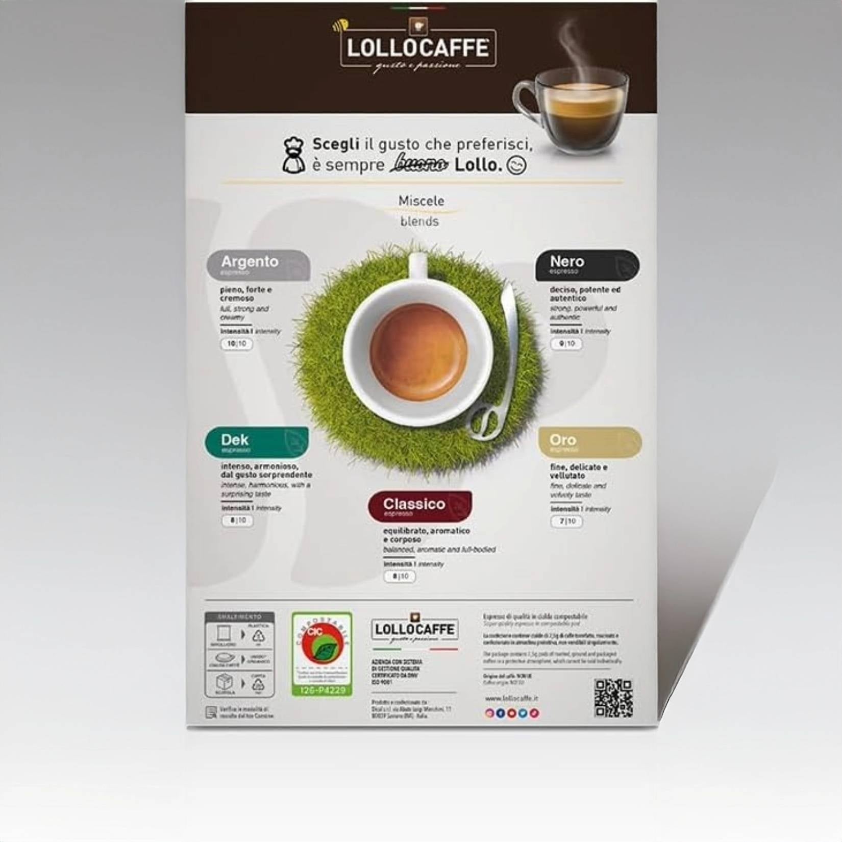 Le Cialde Caffè Lollo Miscela Nera offrono un espresso **intenso e corposo**, con una crema vellutata e un aroma deciso. Perfette per chi ama il caffè **dal carattere forte e avvolgente**, queste cialde sono **compatibili con il sistema ESE 44 mm**.